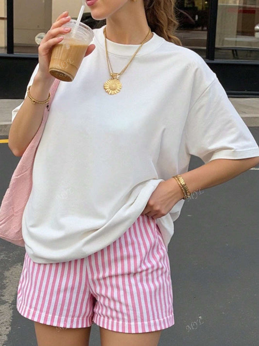Slogan Muster Damen Lässig Oversized Kurzarm Sommer Grafik T-Shirts